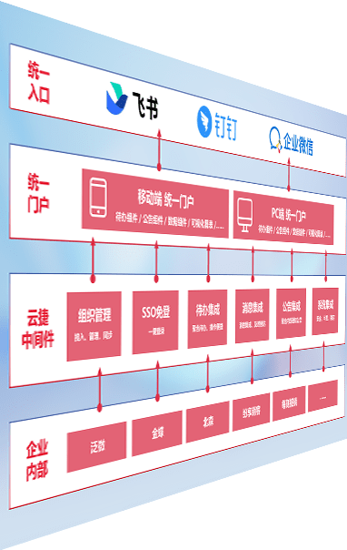 对协作平台提供支持服务,,,支持企业应用与协作平台对接,,,包含组织同步、、、消息集成、、、、待办集成等。。支持目前主流的协作平台:钉钉、、、企微和飞书。。